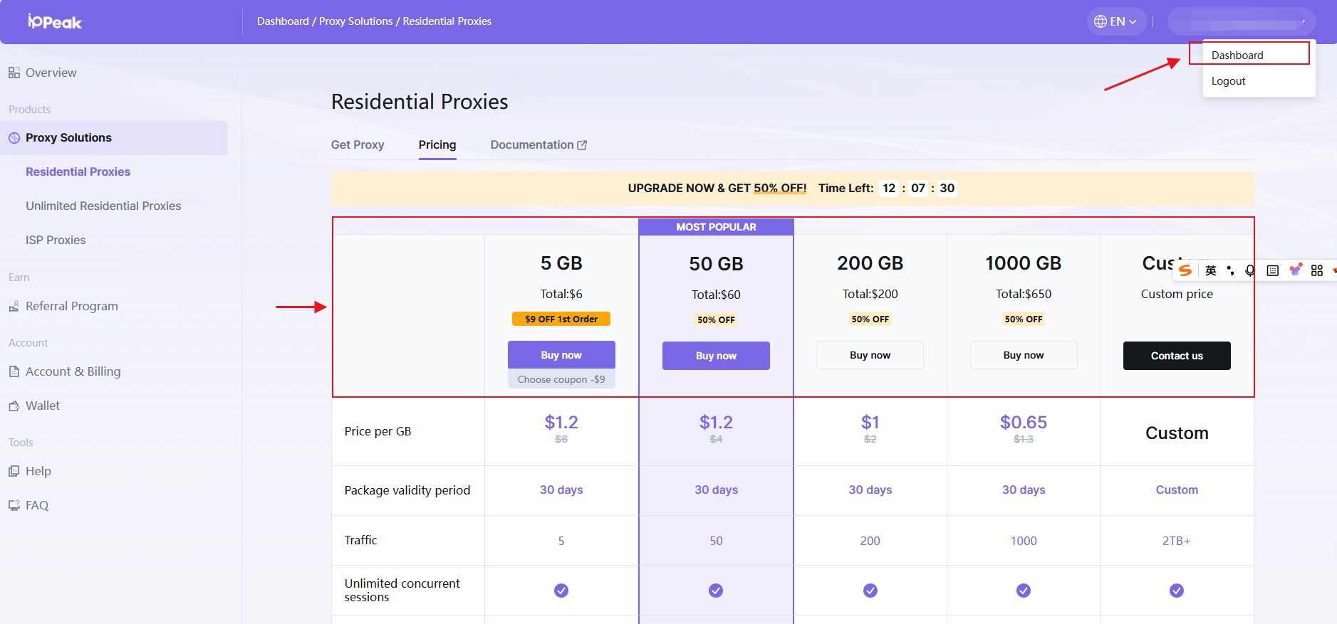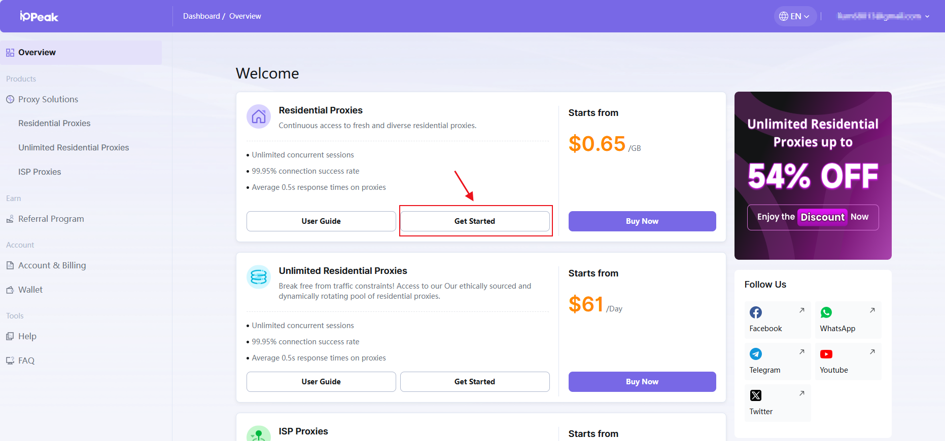 ● After logging in, Select the proxy type you need (Residential Proxy is used as an example).