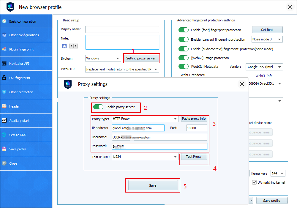 ● Proxy type: HTTP Proxy (You can also choose SOCKS5 as the proxy type)